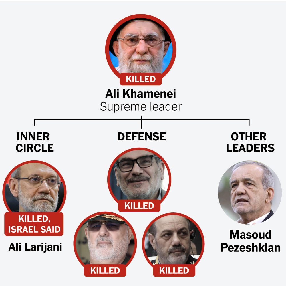 Become a member Get the best offers and updates relating to Liberty Case News. ﹢ Subscribe WorldBritain Summons Iran’s Ambassador Over Message to Iranians in U.K.April 28, 2026 WorldMexico Says 4 Foreigners Were at Cartel Raid Where 2 C.I.A. Officers DiedApril 28, 2026 BusinessTreasury Issues More Sanctions on Iranian Oil ExportsApril 28, 2026 WorldAmid Iran War and Tensions with Neighbors, U.A.E. Goes Its Own WayApril 28, 2026 ― Advertisement ― Britain Summons Iran’s Ambassador Over Message to Iranians in U.K. Editor - April 28, 2026 0 Iran’s embassy in London posted a message on social media inviting Iranians living in Britain to register for a ‘Sacrifice for the Homeland’ campaign. Mexico Says 4 Foreigners Were at Cartel Raid Where 2 C.I.A. Officers Died April 28, 2026 0 Treasury Issues More Sanctions on Iranian Oil Exports April 28, 2026 0 Amid Iran War and Tensions with Neighbors, U.A.E. Goes Its Own Way April 28, 2026 0 FacebookTwitterPinterestWhatsApp HomeWorldHere Are the Top Iranian Leaders Killed in the War So Far Here Are the Top Iranian Leaders Killed in the War So Far By Editor March 17, 2026 1 Israel said on Tuesday that it had killed two more high-ranking figures, including the man who had essentially been running Iran for weeks. Previous articleIsrael’s Killing of Ali Larijani Could Allow Military to Tighten Grip on IranNext articleMaine Democratic Senate primary grows bitter as party vies to unseat Susan Collins World Britain Summons Iran’s Ambassador Over Message to Iranians in U.K. April 28, 2026 World Mexico Says 4 Foreigners Were at Cartel Raid Where 2 C.I.A. Officers Died April 28, 2026 World Amid Iran War and Tensions with Neighbors, U.A.E. Goes Its Own Way April 28, 2026