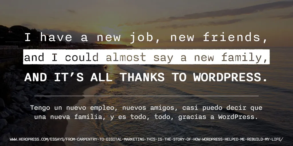 The post From carpentry to digital marketing, this is the story of how WordPress helped me rebuild my life. – De la carpintería al marketing digital, esta es la historia de cómo WordPress me ayudó a reconstruir mi vida. appeared first on HeroPress.