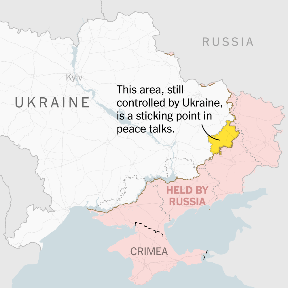 The Kremlin says any peace deal must cede to Russia the entire eastern Donbas region, including territory Ukraine still controls — a nonstarter for Kyiv.